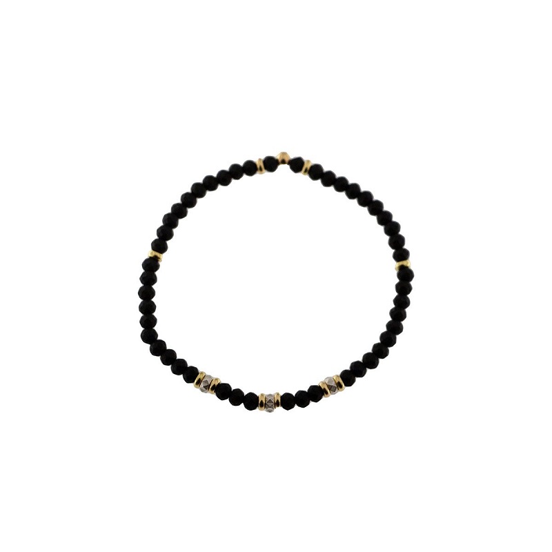 Bracciale da uomo Rue Des Mille collezione Tangle. Braccialetto elastico di 6cm di diametro, interamente composto da pietre dure naturali satinate di colore nero. Bracciale impreziosita da rondelle sia lisce che borchie in argento 925 con galvanica in oro giallo 18kt e platino. Gli intrecci che amiamo e che raccontano storie incredibili : Tangle è fatta cosi, di borchie e dadi, croci, pietre e nodi da urban pirate. Gioielli che prendono ispirazione dal guardaroba di lui, ma da indossare in modalità genderless e totalmente libera, in cui ogni persona ha il comando del proprio racconto. Tutti i gioielli Rue Des Mille sono dotati di astuccio, shopper originale e garanzia di qualità.