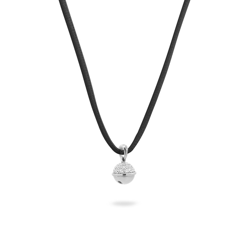 Ciondolo da donna Rue Des Mille collezione Stardust Amuleti, corredato da un filo di cotone di colore nero, da indossare come choker, oppure, il ciondolo può essere rimosso e indossato con una collana. Ciondolo a forma di campanella di 1,7cm di dimensioni, in argento 925 con galvanica in rodio, impreziosito da un pavè di zirconi di colore bianco. Amuleti è una collezione di portafortuna della tradizione, declinati però in volumi XL, dal gusto decisamente glam, per regalare e attirare good vibes con un pizzico d’ironia e una grande dose di carisma. La campanella ha molti significati, ha radici profonde, ma ciò che preferiamo è la sua capacità di chiamare all’azione e soprattutto il saperlo fare con una grazia unica e delicata. Tutti i gioielli Rue Des Mille sono dotati di astuccio, shopper originale e garanzia di qualità.