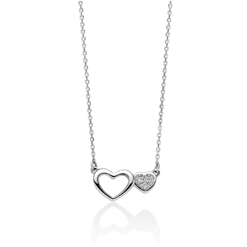 Collana da donna Miluna lunga 45cm e con chiusura a moschettone in oro bianco 9kt, pendente a forma di 2 cuori, uno traforato e uno impreziosito da 3 diamanti naturali di 0,99 punti totali, G color, purezza SI. Tutti i gioielli Miluna sono dotati di astuccio, shopper originale, garanzia di qualità.