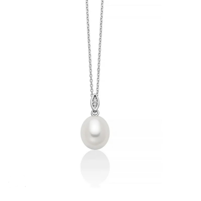 Collana da donna Miluna lunga 45cm e con chiusura a moschettone in oro bianco 9kt. Collanina con una perla coltivata pendente di colore bianco e di diametro 7-7,5mm, impreziosita da 2 diamanti naturali di 0,56 punti totali, G color. Tutti i gioielli Miluna sono dotati di astuccio, shopper originale, garanzia di qualità.