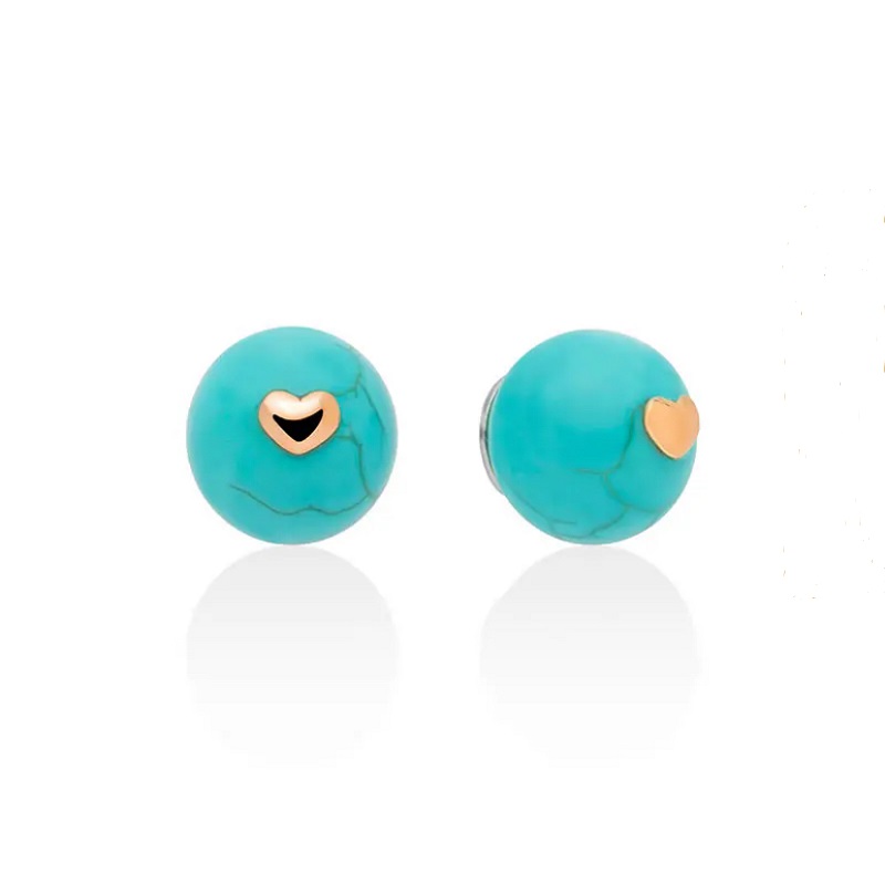 Orecchini da donna Miluna collezione I Segreti Della Natura. Orecchini al lobo con chiusura a perno in argento 925 e aulite color turchese di 8mm di diametro. Orecchini al lobo impreziositi da un cuoricino in oro rosa 9kt. Tutti i gioielli Miluna sono dotati di astuccio e shopper originale Miluna e garanzia di qualità.